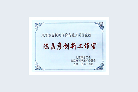 2017年12月 “地下病害探測評價與施工風險監(jiān)控”職工創(chuàng)新工作室獲 評為以北京市勞動模范陳昌彥命名的“陳昌彥創(chuàng)新工作室”