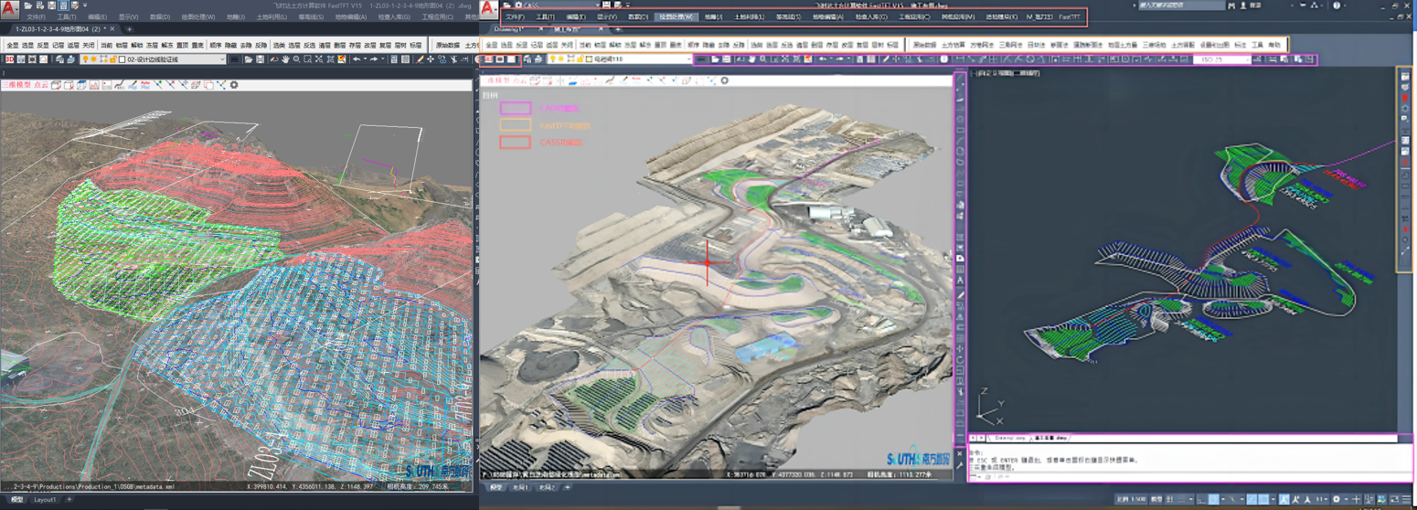 礦山修復(fù)三維可視化設(shè)計(jì):集成FastTFT與CASS系統(tǒng),實(shí)現(xiàn)設(shè)計(jì)模型與地表現(xiàn)狀無(wú)縫融合,確保方案科學(xué)可行。