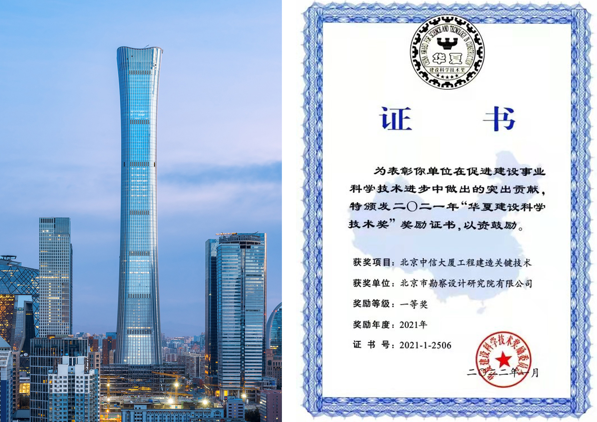 1月19日,華夏建設科學技術獎勵委員會發(fā)布“2021年度華夏建設科學技術獎”授獎項目公告。我院與中國建筑股份有限公司等單位共同完成的“北京中信大廈工程建造關鍵技術”項目獲2021年度華夏建設科學技術獎一等獎。