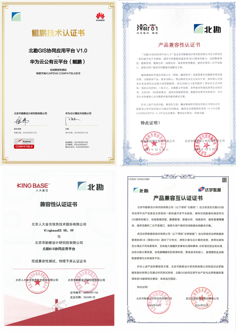 “北勘GIS協(xié)同應用平臺”獲華為云等4個國產(chǎn)平臺技術認證證書