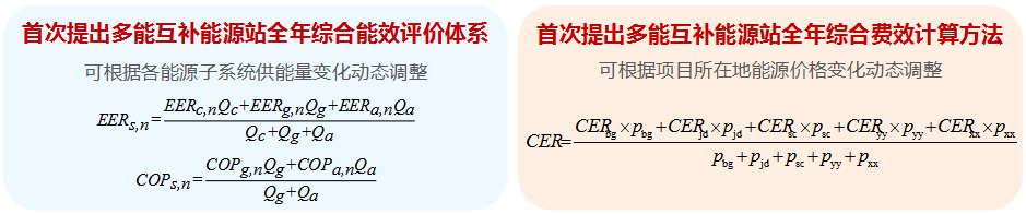 根據(jù)對(duì)國(guó)內(nèi)外相關(guān)規(guī)范、標(biāo)準(zhǔn)、文獻(xiàn)的深入研究,首次提出多能互補(bǔ)能源站全年綜合能效評(píng)價(jià)體系以及綜合費(fèi)效計(jì)算方法,實(shí)現(xiàn)對(duì)多能耦合系統(tǒng)運(yùn)行效果科學(xué)嚴(yán)謹(jǐn)?shù)难信?,填補(bǔ)了行業(yè)對(duì)多能互補(bǔ)能源站運(yùn)行等級(jí)評(píng)價(jià)的空白。